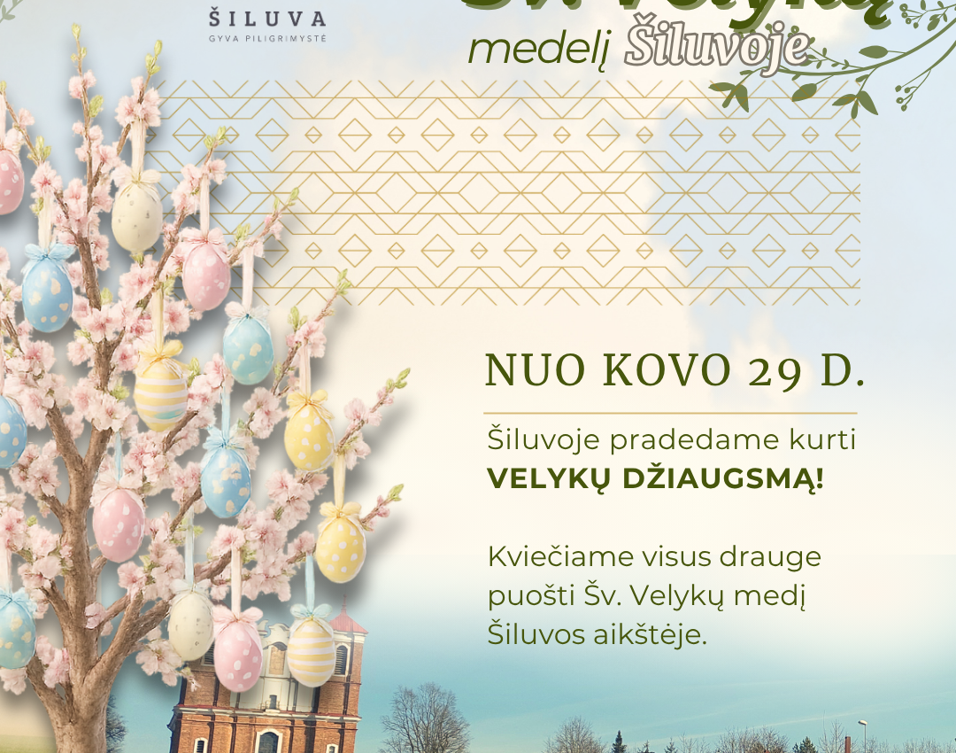 Artėjant šv. Velykoms, Šiluvos piligrimų centras, Švč. Mergelės Marijos Gimimo parapija ir Šiluvos seniūnija kviečia visus – šeimas, vaikus, jaunimą ir senjorus – susiburti Šiluvoje ir drauge kurti Prisikėlimo džiaugsmą. Nuo kovo 29 dienos Šiluvos aikštėje pradėsime puošti Šv. Velykų medelį, todėl kviečiame kiekvieną prisidėti – atsinešti margutį, savo rankomis kurtą papuošimą ar tiesiog ateiti pabūti bendrystėje.