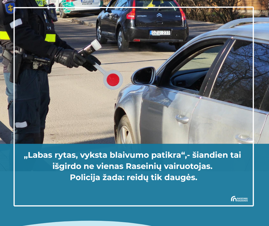 „Labas rytas, vyksta blaivumo patikra,“ – šiandien tai išgirdo ne vienas Raseinių vairuotojas.Policija žada: reidų tik daugės. Previous Post Raseiniuose – vagystė degalinėje: už kurą nesumokėjęs vairuotojas pasišalino Next Post Pokalbis su meru A. Nekrošiumi: nuo reidų iki vaikų aikštelių (video) Related Articles KultūraNaujienosRaseinių naujienų tv Šiandien Lietuvai – 105-eri! Su švente! NaujienosRaseinių naujienų tv RNvideo: Vis dar ieškote Kalėdinių dovanų? Tada šis reportažas, būtent jums! Raseinių naujienų tv Joninių šventės metu išgirsite į Dainų šventę vykstančių kolektyvų pasirodymus! Raseinių naujienų tv Politinio komiteto „Tau, kraštieti“ tarybos narės: mūsų komanda savo rinkiminius pažadus įgyvendina! Raseinių naujienų tv Ansamblis „Dubysa“: muzika, kuri jungia (video) Facebook komentarai Subscribe Login Notify of new follow-up comments new replies to my comments Label {} [+] Vardas* Elektroninio pašto adresas* Website Label {} [+] Vardas* Elektroninio pašto adresas* Website 0 Komentarų Naujausi Seniausi Most Voted Inline Feedbacks Žiūrėti visus komentarus