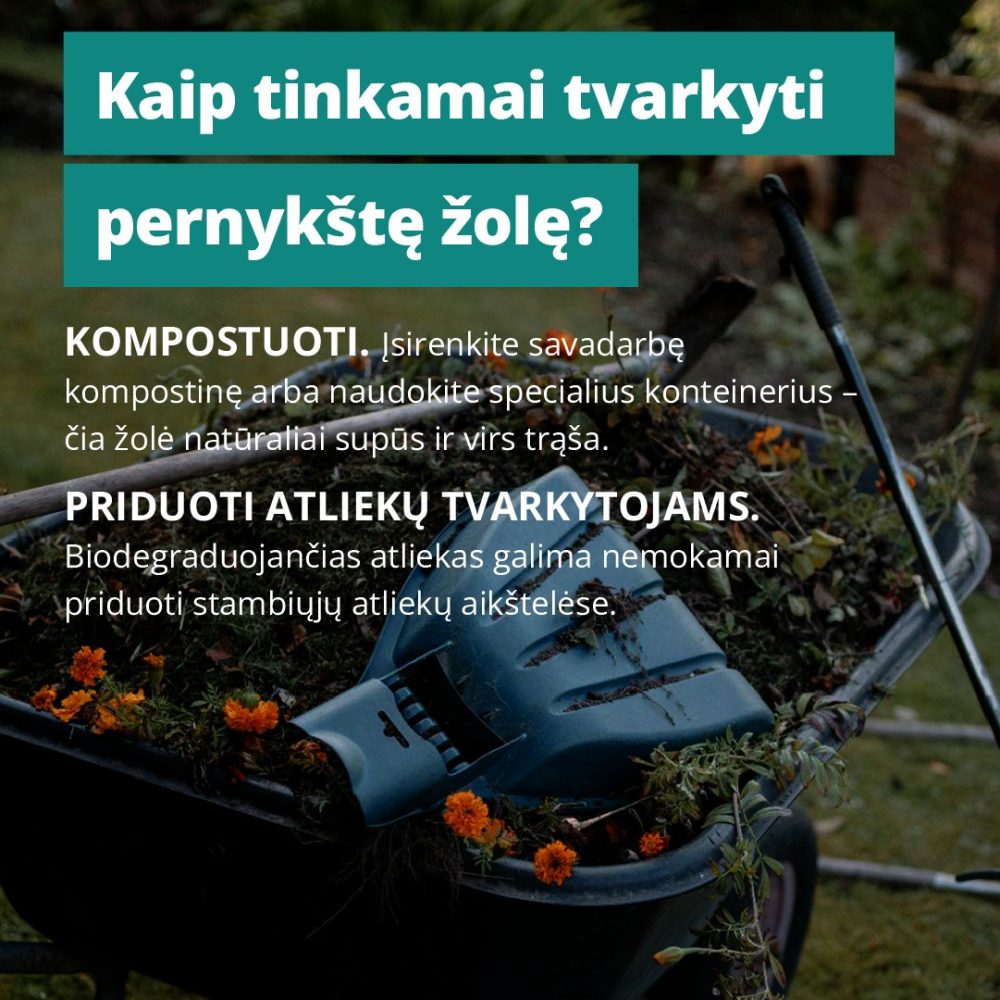 Taip pat biodegraduojančias atliekas galima priduoti atliekų tvarkytojams nemokamai, kurių pridavimo punktus galima rasti stambiųjų atliekų pridavimo aikštelėse.