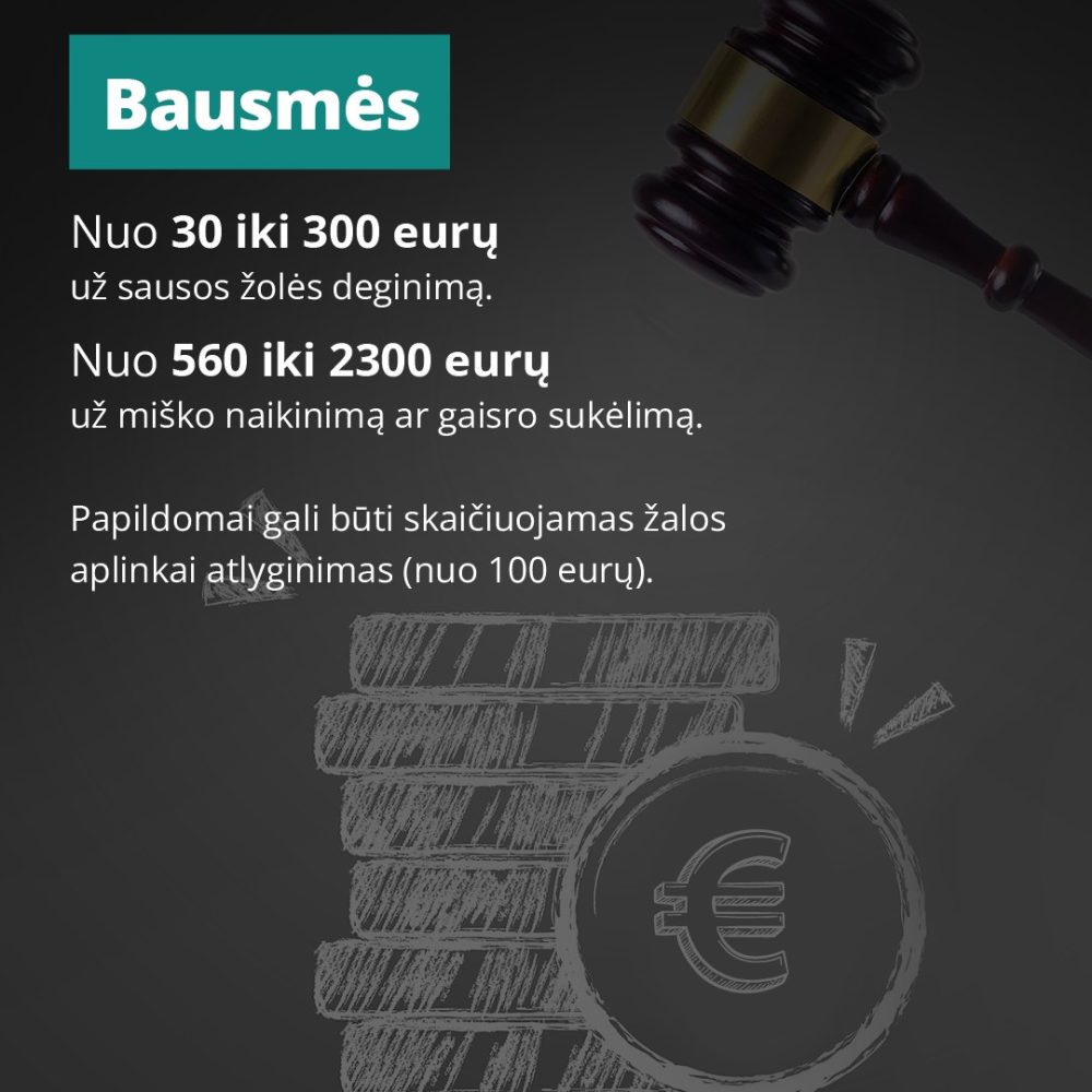 - nuo 30 iki 300 eurų už sausos žolės deginimą;
