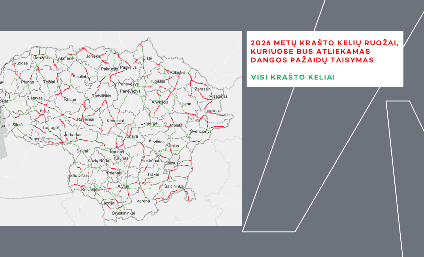AB „Kelių priežiūra“ visuomenei atveria informaciją apie krašto keliuose planuojamus „dešiniojo rato“ dangos pažaidų tvarkymo darbus. Nuo šiol gyventojai gali vienoje vietoje matyti, kuriuose ruožuose šiemet bus vykdomi darbai – parengtas ir viešai pristatomas planuojamų darbų žemėlapis.